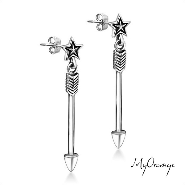 MyOrange.時尚柳丁【FJCF092】幼稚~鈦鋼仿古銀五芒星弓箭耳環