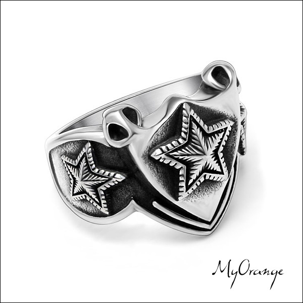 MyOrange.時尚柳丁【FJSA970】玩味生活~鈦鋼仿古銀星星盾牌寬版梯形戒指