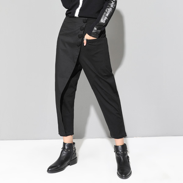 MyOrange.時尚柳丁【FMJ8739】Opening~不對稱大圓釦圍裙哈倫褲