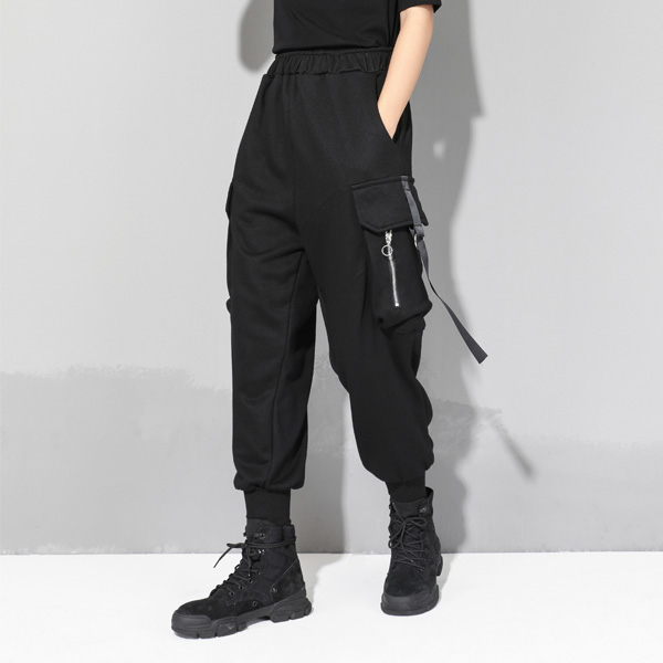 MyOrange.時尚柳丁【FMJ8781】合輯~暗黑系拉鍊飄帶工裝休閒褲