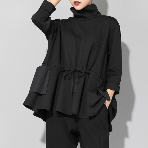 MyOrange.時尚柳丁【FMJ9969】享受~綁繩立體口袋高領寬T